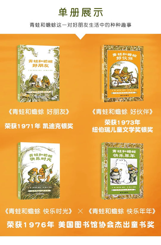 by (德)万伽·欧尔特/文 / (德)玛努艾拉·欧尔特/图Publisher 明天出版社Published 2010-3 Age 3-6岁 About 《青蛙和蟾蜍》系列共有四册,分别是:《青蛙和蟾蜍──好朋友》、《青蛙和蟾蜍──好伙伴》、《青蛙和蟾蜍──快乐时光》、《青蛙和蟾蜍──快乐年年》,每册书正文64页,图文参半,各有5个小故事,总共有二十个小故事。 故事主要是在述说主角青蛙与蟾蜍这一对好朋友生活当中的种种趣事。文字优美流畅,叙述方式幽默童趣,故事感人又好玩,这两个角色表现出的童心及纯真的友谊将使读者会心一笑。他们的友情与默契贯串所有的故事,让读者在阅读时,从头到尾都沉浸在一种温馨的情绪中。然而,青蛙与蟾蜍特殊的个性、出人意料的行为及想法,又让故事的发展充满幽默风趣的惊喜。作者洛贝尔运用日常生活中最平凡的场境及生活点滴,透过想象的魔力,直接带领读者打开神奇的幸福宝藏,品味最美丽、最真挚的友谊。没有严肃的教条味,也没有沉重的批判思考,满满是至真至情,挑动读者内心深处最原始而纯真的感动。其故事在文字使用上,及文学内涵上都有极佳的阅读价值,是简易阅读书籍中的重要佳作,也是让孩子在阅读较具挑战性的短篇章节小说前的良好暖身材料。 About the Author 艾诺·洛贝尔(Arnold Lobel)是美国当代最尊重儿童智慧的作家,他的作品除了温馨、趣味之外,对于传统被认为是高层次思考才能接触的哲学论题,例如:勇气、意志力、友谊的本质、恐惧、智慧等,都能够用具体的形象,说闲话的语气,数落出来,让读者常常会发出“啊!”的感叹。 艾诺·洛贝尔的作品,每一篇都可以作为儿童哲学的教材。他1933年5月29日生,1987年12月4日离开这个世界。他离开这个世界时,在纽约时报登了一则启事,大意是说:“如果你想念我,请不要设立什么基金会、奖学金、纪念碑之类的,请您看我的书,因为我就在里面”。艾诺·洛贝尔是出版社最受欢迎的人物,不只是因为他的书籍畅销而已,主要的是听说不管是写作或做插画,他的稿子都非常的干净利落,他是一个非常好合作的人。 艾诺·洛贝尔曾经说,创作对他而言非常不容易,但是想到每天在这世界上,都有人坐在那里读他的书,欣赏他的故事,他就非常地高兴,他热爱为孩子做书。 Details & Specs Title:青蛙和蟾蜍是好朋友拼音版 Format: 平装 Language: 中文 ISBN: 9787570807864普通价格 $9.99快速浏览