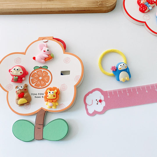 Flower-shaped 5-piece cute animal hair ties